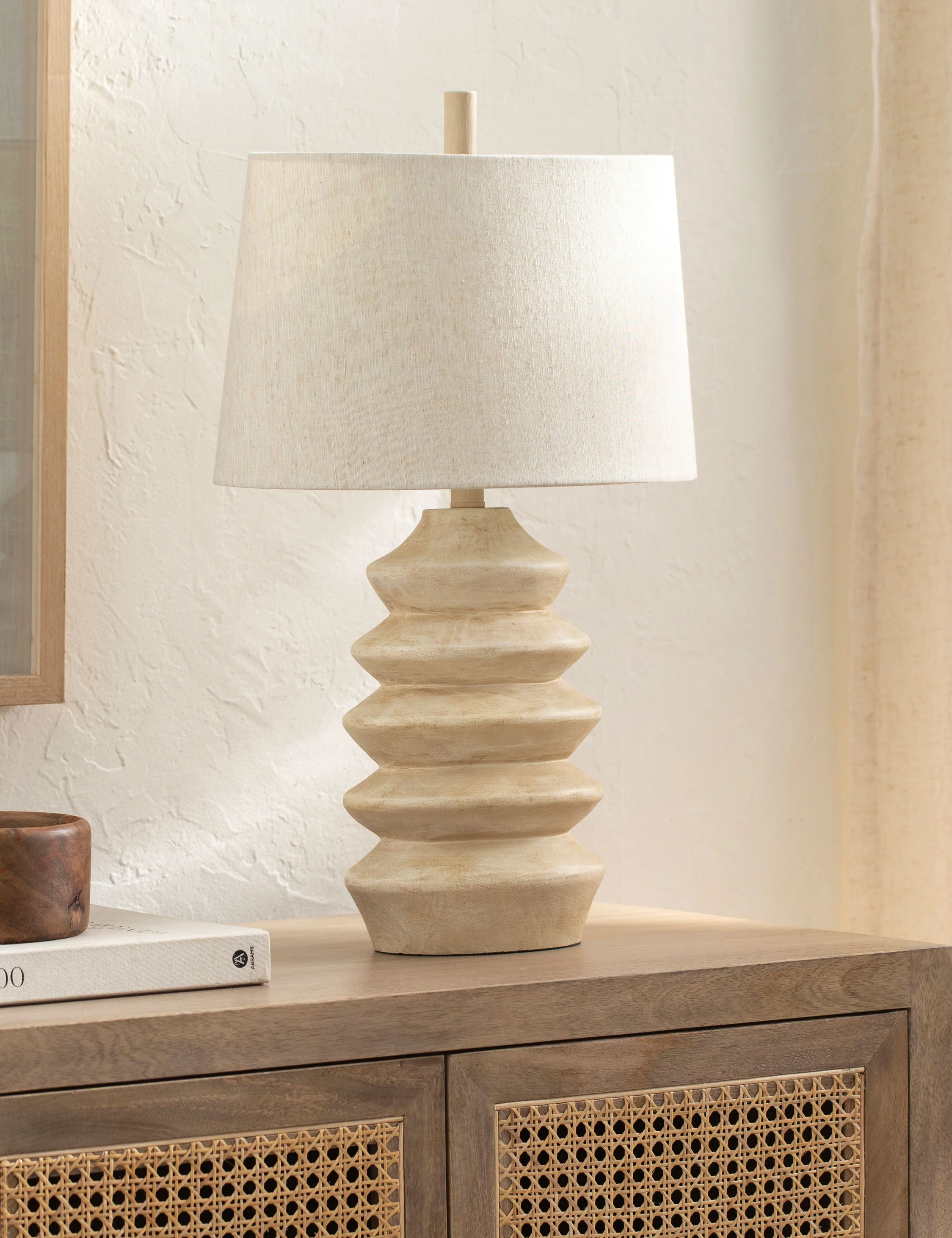 Give shape to your tabletop with the Zhang lamp. The ridged silhouette catches the eye in its rustic finish, offering timeless texture with an artful edge. We love the balanced design of this versatile table lamp for transitional or modern decor.